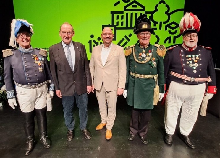 Alois im Kreis seiner Uniformierten Kameraden und weiteren Träger der Heimatmedaille des Landesverband der Bürgerwehren und Milizen Baden-Südhessen und dem BHV.